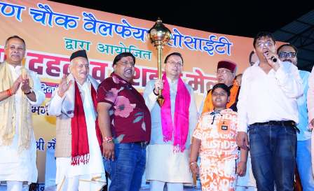 सीएम धामी विजयदशमी पर लक्ष्मण चौक में आयोजित दशहरा महोत्सव में हुए शामिल